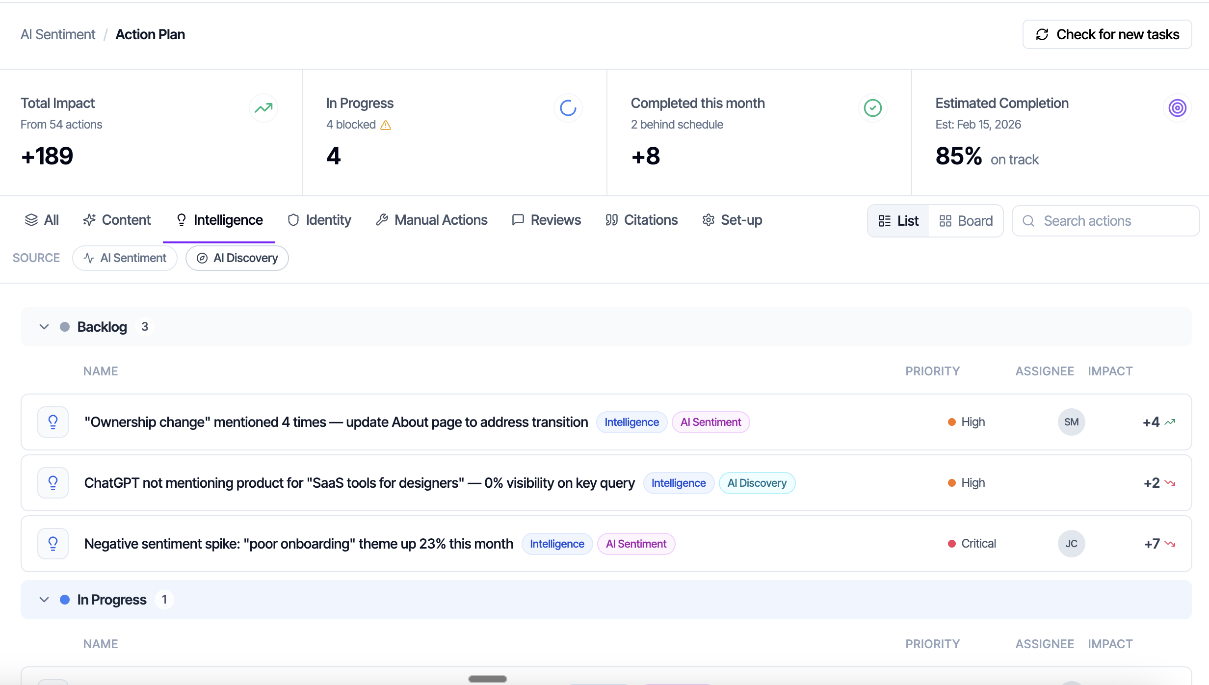 Get AI Powered Actions to Improve Your Visibility