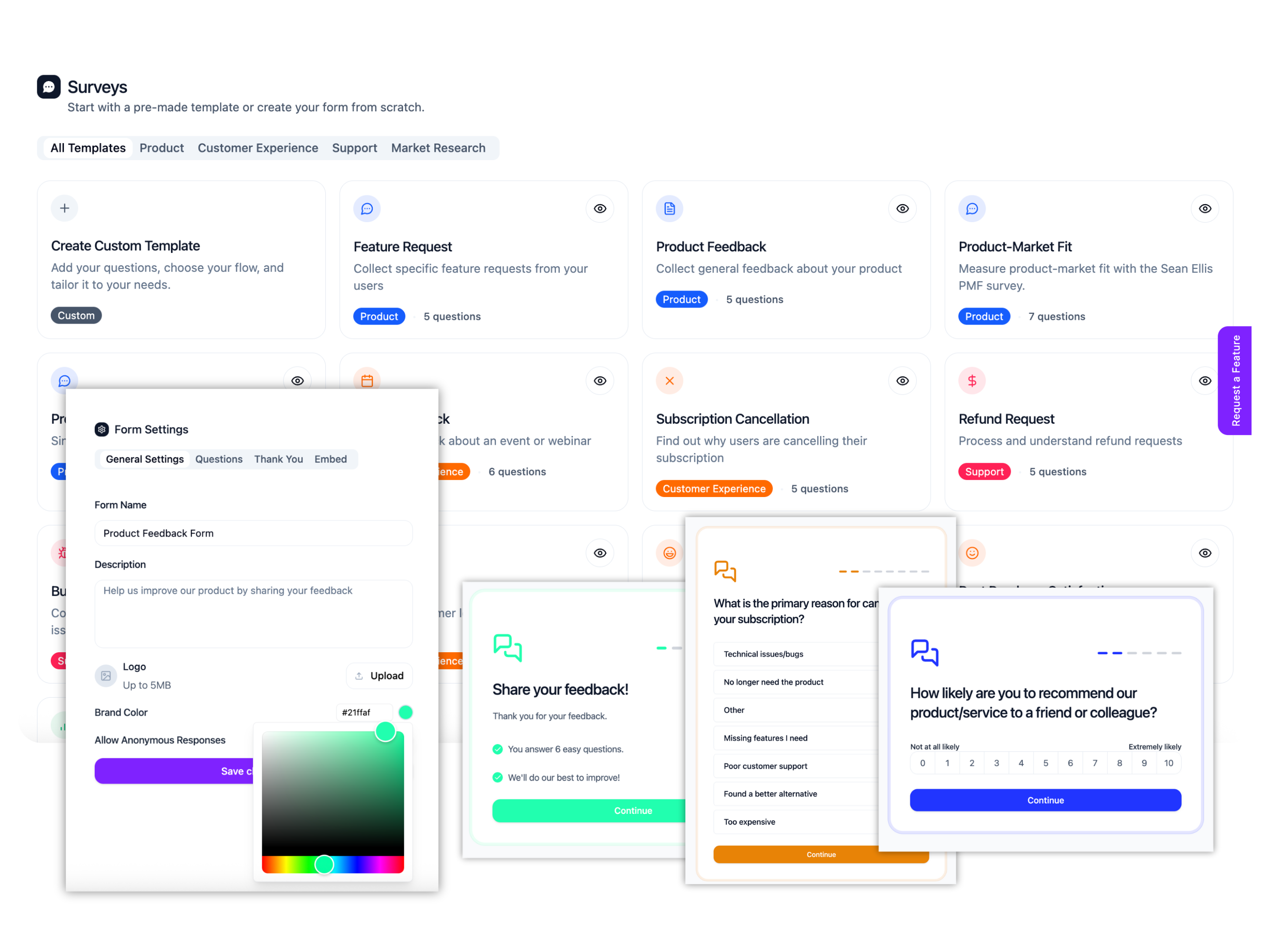 In-app NPS surveysFeature request boardsBeta tester feedbackOnboarding surveysChurn reason surveysUsability testing formsIn-app NPS surveysFeature request boardsBeta tester feedbackOnboarding surveysChurn reason surveysUsability testing formsIn-app NPS surveysFeature request boardsBeta tester feedbackOnboarding surveysChurn reason surveysUsability testing forms